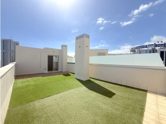 En la planta principal se encuentra la habitación principal con terraza privada de 11 m², una segunda habitación luminosa, un baño completo y un amplio salón-comedor con cocina abierta. Desde el interior de la vivienda se accede por escaleras a la planta de cubierta, donde se disfruta de una espectacular terraza descubierta de 54 m², perfecta para relajarse o disfrutar de las vistas.